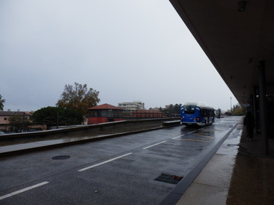 空港に着いたら路面電車で最寄りのバス停に行き、バスでアンティーブ(Antibes)駅に行きました。バスに乗ったら天気予報通り、かなりの悪天候で時折すごい豪雨になっていました。