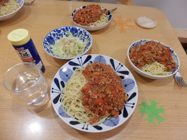 夕食はスパゲッティミートソースを食べました。