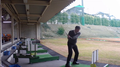 このゴルフ練習場では打球を計測するすごいシステムがありました。カメラがいろいろな場所にあるようで、打球の飛跡をモニターで確認できるようになっていました。打ったら球がどこに行ったか見えないから、これは面白いです。
