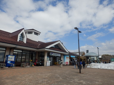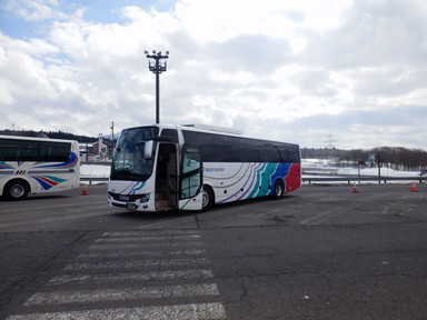 名古屋に来て、そのまま帰るというのも新しい知見が得られないから、どこかいいところがないかと探し、白川郷に寄って帰ることにして、朝はバスで名古屋駅に行きました。ナナちゃん人形前の名鉄バスセンターから高速バスに乗って白川郷に向かいました。途中のひるがの高原SAで休憩したとき、ソフトクリームを食べました。この辺りから雪景色になってきました。