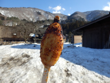 2時間半少々で白川郷に到着しました。歩く場所は除雪されているけど、雪は多く積もっていました。展望台まで歩いて上り、白川郷の風景を一望して合掌造りの家を眺めました。下に降りてから、合掌造りの家や集落の様子を見学しました。連休中日というのもあるけど、オーバーツーリズムで外国人もうじゃうじゃいるから、家の中の見学は明日にして、遅めの昼食のあゆうどんを食べました。食後は五平餅も食べて、吊り橋を渡って地酒を飲みました。