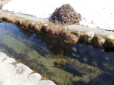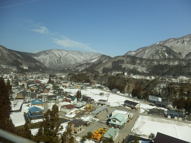 チェックアウトより少し早めだけど、計画的で、合掌造りの家の見学は朝9時から開館で、この時間が空いているという情報を得たので行ってみました。和田家住宅(中)、長瀬家(中、屋根の骨格)、神田家(中、3階から)を見学しました。合掌造りのすごさも勉強し、あえて曲がった木材(チョウナバリ)を使って丈夫にしたり、屋根の骨格は材料の破壊を回避するためにあそびを持たせ、固定しないで置いただけの構造(駒尻)になっているすごい技術があることもわかりました。1m3の雪の重さは約500kg、神田家の例では屋根の重さは40tで1mの高さの60tの雪を合わせると100tにもなるそうです。養蚕業も盛んだったようで、上の階では蚕を育てていたようです。養蚕業の衰退とともに合掌造りの住宅が減っていき、失われてしまう前に世界遺産に登録したそうです。積もった雪を処理するために水路を巡らせているそうです。魚が泳いでいるところもあります。混む前に少し早めに合掌造りのレストランで飛騨牛朴葉味噌定食の昼食を食べました。それからまた白川村の集落を巡り、お土産を買ったりしました。