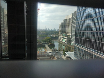 午後は委員会があり、東京駅前の新丸ビルの会議室に行って委員会に参加し、広報委員長報告もしました。廊下からは和田倉濠が見えました。