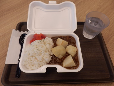 午後は学内の学生授賞式があり、クラブ顧問として行きました。終了後は少し遅い時間に学内カフェで昼食のカレーライスを食べて、オンラインで個別ゼミをしました。
