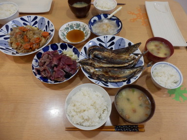 夕食はサンマの開きとカツオのたたきを食べました。