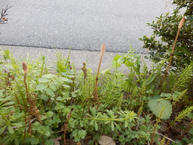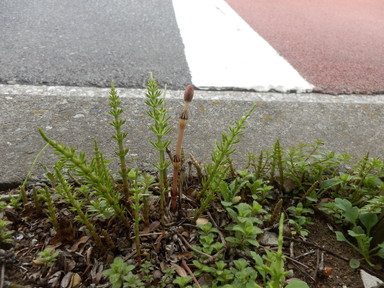 道路には、昨日よりも大きなつくしが生えていました。