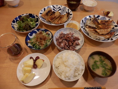 夕食は餃子といかカツとホタルイカを食べました。