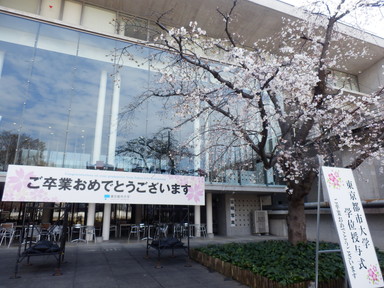 大学の桜(ソメイヨシノ)の花が咲き始めていました。