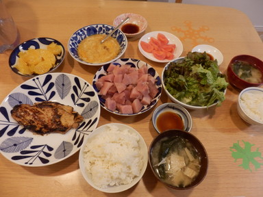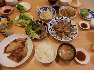 夕食は豚の生姜焼きと鯖の塩焼きを食べました。