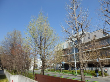 今日はさらに桜が咲いていました。学内の落葉樹のカエデやケヤキやイチョウも若葉が出始めていました。