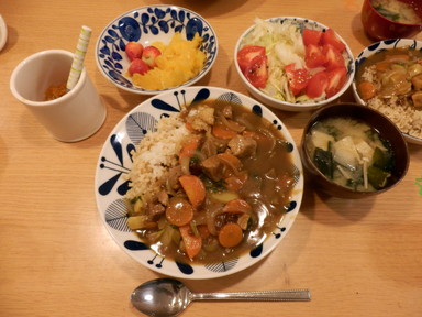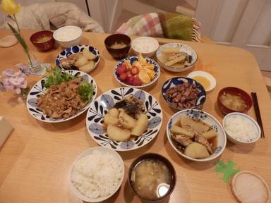 夕食はぶり大根と豚の生姜焼きとホタルイカを食べました。