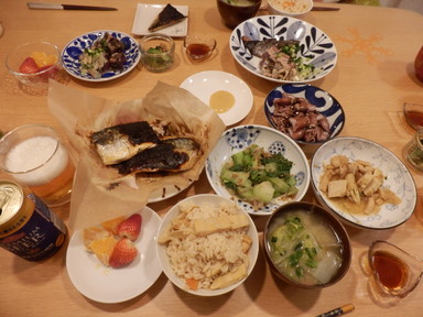夕食は鯖の西京漬けとカツオの藁焼きとホタルイカを食べました。