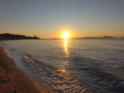 早起きして海岸まで歩いて初日の出を見に行きました。晴れていて綺麗な初日の出が見えました。振舞われていたぜんざいもいただきました。