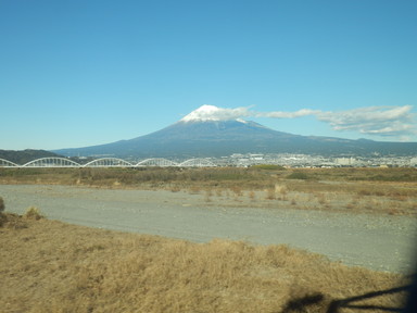 昼前に相生駅から新幹線ひかり号に乗って東京に向かいました。Uターンラッシュで新幹線は混んでいて、乗り降りに時間がかかって少し遅延していたけど、その挽回のためか、長い間高速走行を維持して走っていました(遅延は5分程度)。天竜川からも富士山が見えて、富士川でも富士山が見えました。