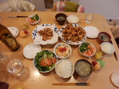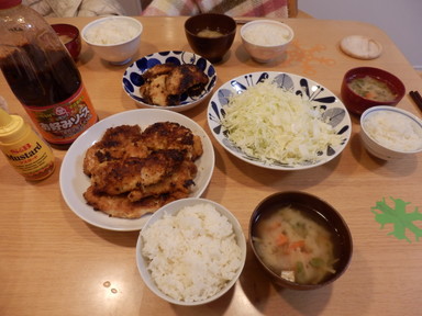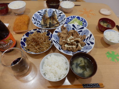 夕食は豚肉の甘辛焼と鯖の塩焼きとコロッケを食べました。