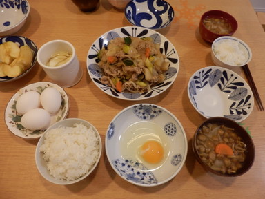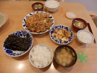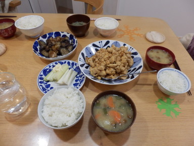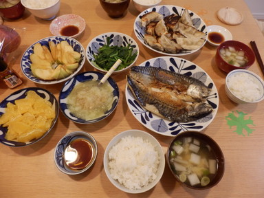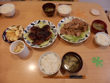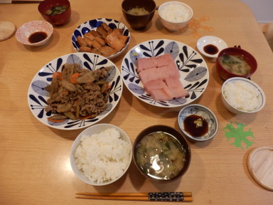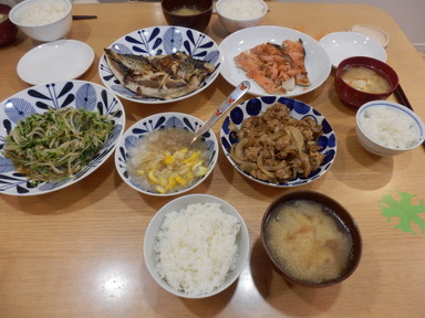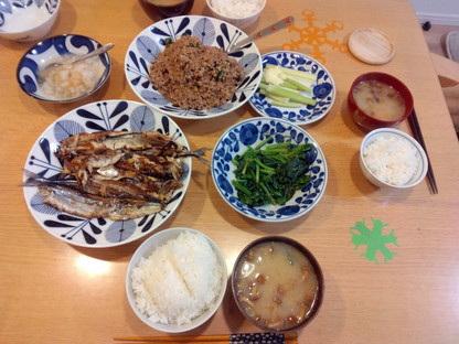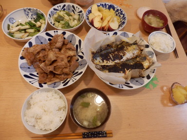 夕食は鮭・鯖の塩焼きと豚の生姜焼きを食べました。