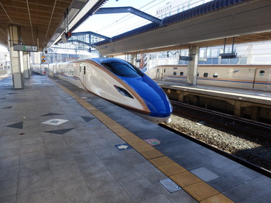 朝早く起きて、東京駅から北陸新幹線かがやき号に乗って長野に向かいました。新幹線の車窓からは富士山が見えました。