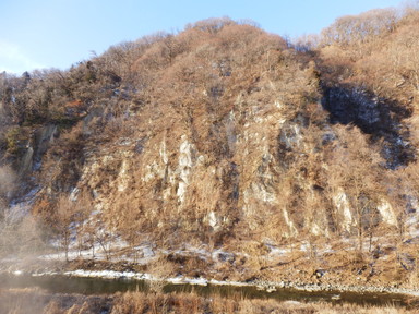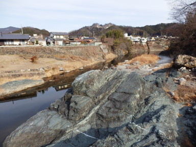 少し観光するために早めに来たから、青岩公園に行って青い岩を見ました。こんにゃく工場、こんにゃく販売所もなどを見て、下仁田層が見える鬼淵も見学しました。川の流れも綺麗でした。古い道には道祖神や庚申塔などもありました。下仁田は中央構造線(MTL)上の場所らしく、下層(青い岩)は昔の地底火山が隆起した石、上は別の層という特殊な地形(それがフォッサマグナ)をしている場所のようで、貴重な岩の地形を見ることができました。