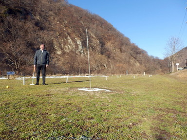 朝は早く起きて、露天風呂温泉に入りました。露天風呂からも部屋の窓からも雪を少し被った岩山と月の綺麗な風景が見えました。皆で朝食を食べて精算してチェックアウトしました。部屋の窓の外から見えていたパターゴルフ場のような場所が気になり、シャトルバスの時間まで少し時間があったからホテルのフロントで聞いてみたら無料でクラブとボールを貸してくれるようだったので、借りて一人で1時間弱マレットゴルフで遊び(ゲートボールのようなハンマーみたいなクラブ)ました。地面の草には霜が降りて土は凍っていて、まだ雪が残っている部分もあるのがまた楽しかったです。