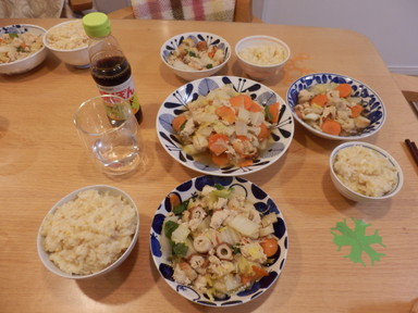 夜はピザパーティーでいろいろな種類の手作りピザをいただきました。そしてまた親戚の飲み会で交流しました。