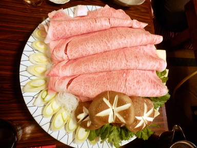 昼の集合時間になったら、学生達と合流し、コロムビアに行ってすき焼きをごちそうになりました。上質な上州牛と下仁田ねぎがとても美味しかったです。