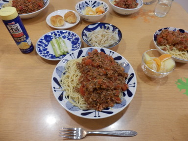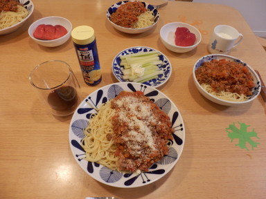 夕食はスパゲッティミートソースを食べました。