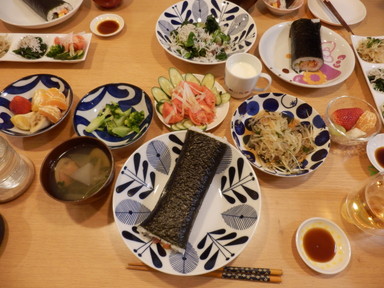 夕食は恵方巻を食べました。