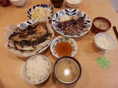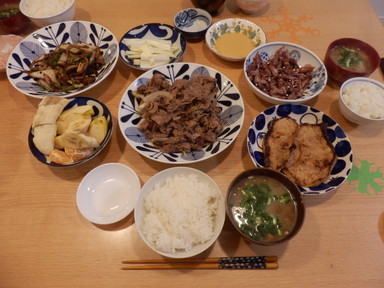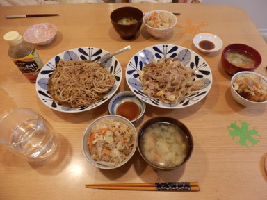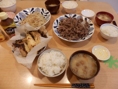 夕食は和牛焼肉と豚肉生姜焼きを食べました。
