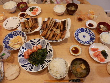 夕食は春巻きを食べました。