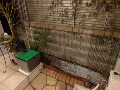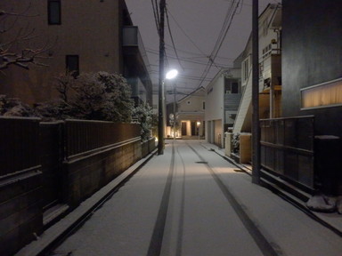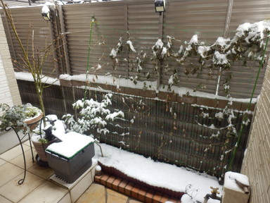 夜外にでたら、土の部分に少し雪が積もっていました。