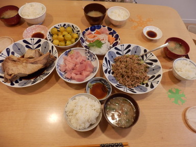 夕食はカツオのたたきと鯖の西京漬けを食べました。