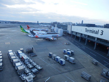 時間になったらジェットスターの便に乗って成田空港に行きました(往復15,540円と、新幹線片道よりもずっと安く。リュックサック1つで預入荷物がない自分にはLCCは最適です)。まだ眠くて、かなりの時間機内で熟睡していました。