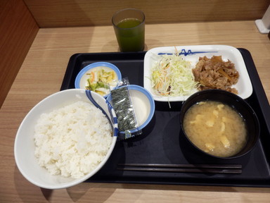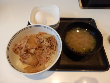 朝は吉野家で牛丼朝定食を食べました。