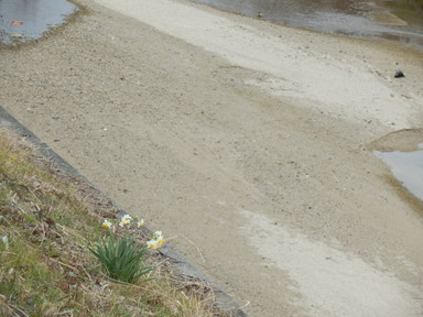 それから、川沿いののどかな道を歩いて、カモや水仙の花を見て空港に向かいました。福岡空港を外から見るのは初めてです(いつも地下鉄で移動するから)。