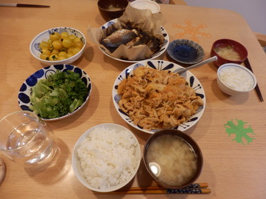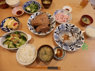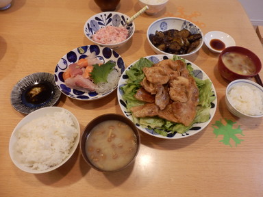 夕食は刺身と豚肉の生姜焼きを食べました。