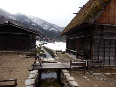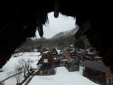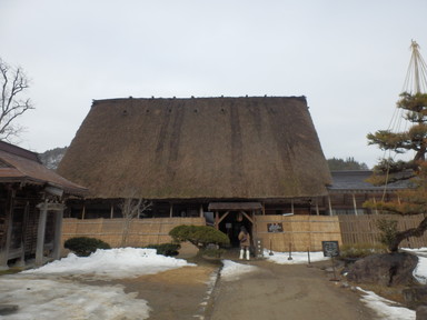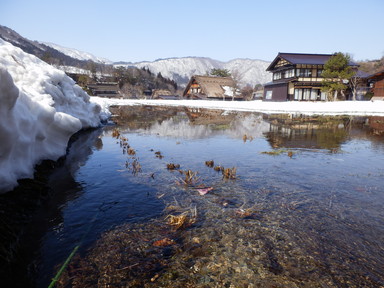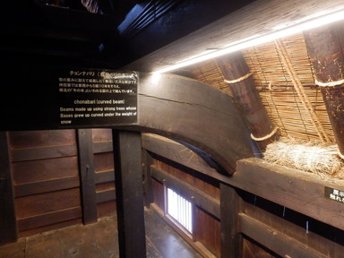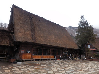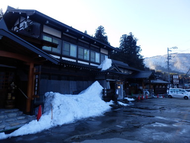 チェックアウトより少し早めだけど、計画的で、合掌造りの家の見学は朝9時から開館で、この時間が空いているという情報を得たので行ってみました。和田家住宅(中)、長瀬家(中、屋根の骨格)、神田家(中、3階から)を見学しました。合掌造りのすごさも勉強し、あえて曲がった木材(チョウナバリ)を使って丈夫にしたり、屋根の骨格は材料の破壊を回避するためにあそびを持たせ、固定しないで置いただけの構造(駒尻)になっているすごい技術があることもわかりました。1m3の雪の重さは約500kg、神田家の例では屋根の重さは40tで1mの高さの60tの雪を合わせると100tにもなるそうです。養蚕業も盛んだったようで、上の階では蚕を育てていたようです。養蚕業の衰退とともに合掌造りの住宅が減っていき、失われてしまう前に世界遺産に登録したそうです。積もった雪を処理するために水路を巡らせているそうです。魚が泳いでいるところもあります。混む前に少し早めに合掌造りのレストランで飛騨牛朴葉味噌定食の昼食を食べました。それからまた白川村の集落を巡り、お土産を買ったりしました。